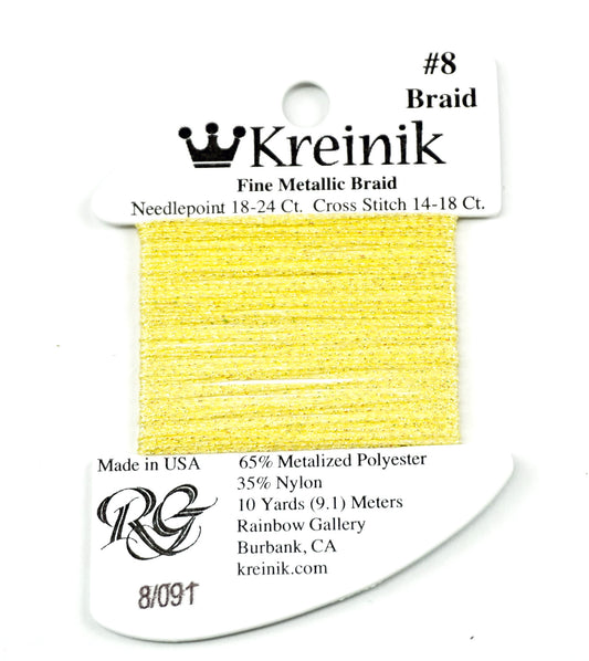 KREINIK BRAID ~ Star Yellow #091, Size 8 (Fine), 10 Yard Card of Fiber for Needlepoint by Kreinik
