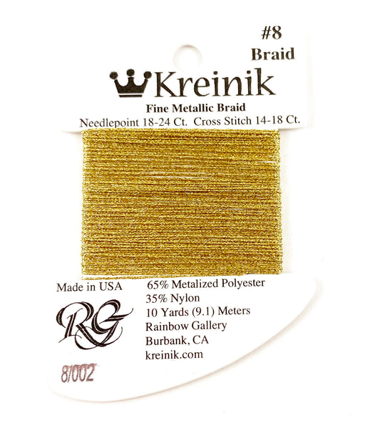 KREINIK BRAID ~ Japan Gold Size #8 (Fine) #321J Braid 10 Meter Spool of Thread for Needlepoint by Kreinik