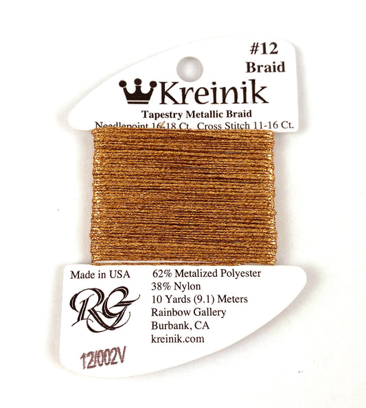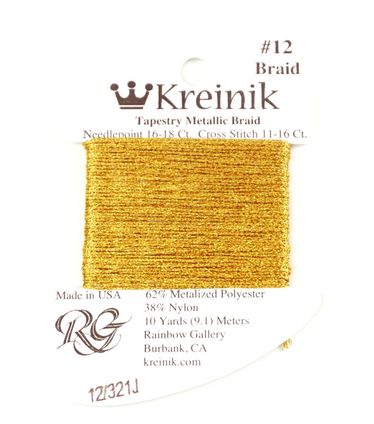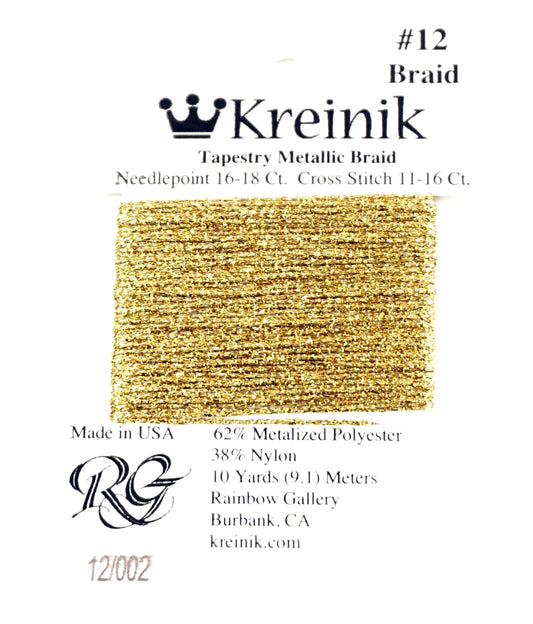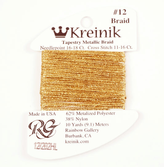 KREINIK BRAID ~ AZTEC GOLD Size #12 (Medium) #202HL Braid 10 Meter Spool of Thread for Needlepoint by Kreinik