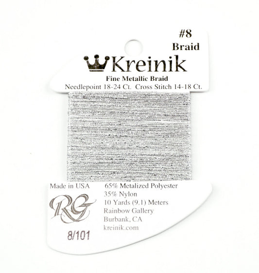 KREINIK BRAID ~ Platinum Silver Size #8 (Fine) #101 Braid 10 Meter Spool of Thread for Needlepoint by Kreinik