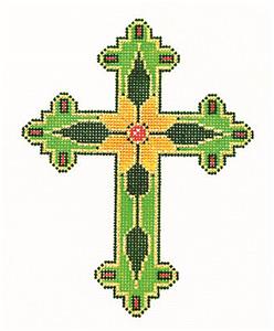 Cross ~ Elegant 7" Tall Green & Gold CROSS handpainted 13 Mesh Needlepoint Canvas by LEE 13 Mesh