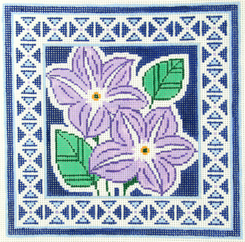 Floral Canvas ~ Blue Pansy Flower Series handpainted Needlepoint Canvas on 12 Mesh by LEE