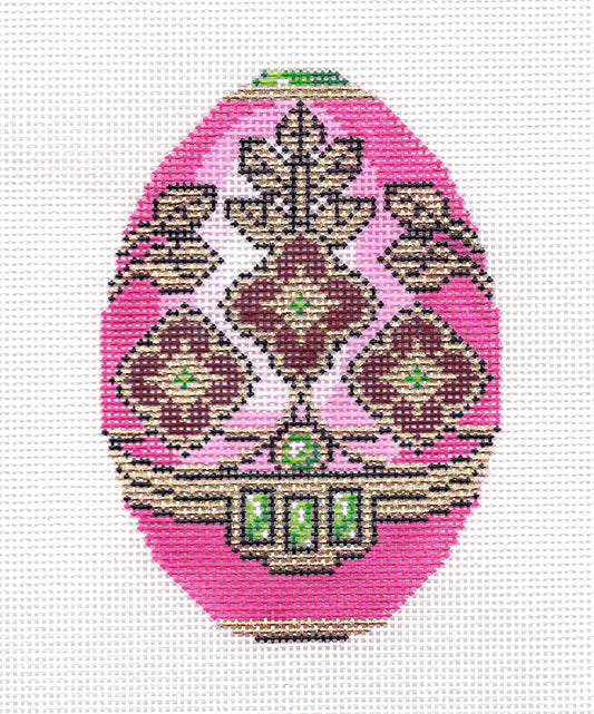 Faberge Egg ~ Elegant Jeweled Rose Pink Floral Egg handpainted Needlepoint Canvas 18 mesh by LEE