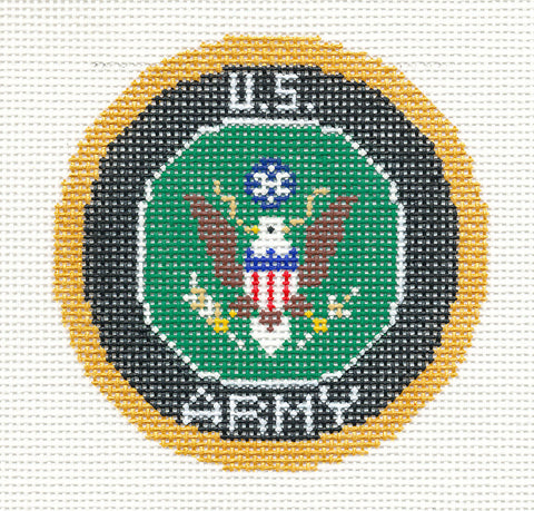 Military ~ U.S. ARMY Military Emblem handpainted 18 mesh 3" Rd. Needlepoint Canvas by LEE