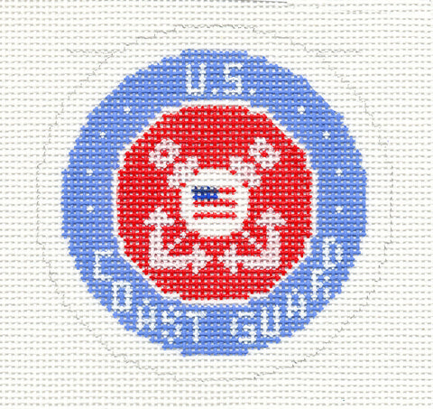 Military ~ U.S. COAST GUARD Military Emblem 3" Rd. handpainted 18 mesh Needlepoint Canvas by LEE