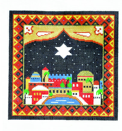 Canvas~Tallis Bag with Jerusalem on a Starry Night handpainted Needlepoint Canvas