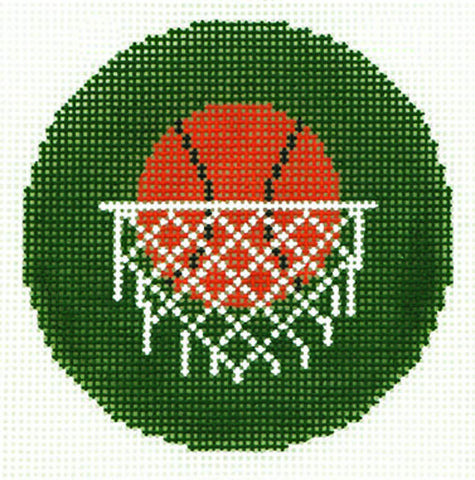 Sports ~ Basketball & Hoop Design handpainted 3" Rd. 18 Mesh Needlepoint Canvas Ornament by LEE