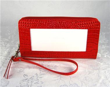 Accessory ~ Zip-Top Wallet Red Alligator Leather Zipper Wallet with Ext. Interior for Needlepoint Canvas by Lee