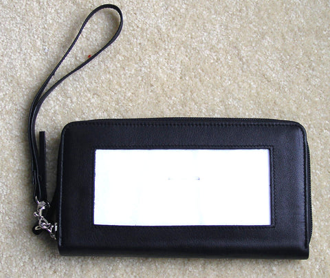 Accessory ~ Zip-Top Jet Black Smooth Leather Zip Wallet with Strap for Needlepoint Canvas by LEE