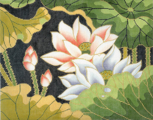 Canvas ~ Floral Oriental Lotus Blossom Garden handpainted "BF" Needlepoint Canvas by LEE