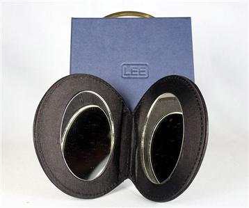 Accessory ~ Black Smooth Leather Purse Folding Mirror for a Needlepoint Canvas by LEE