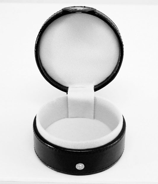 Accessory ~ Black Leather Gift Box Case for a handpainted 3" Rd. Needlepoint Canvas by LEE