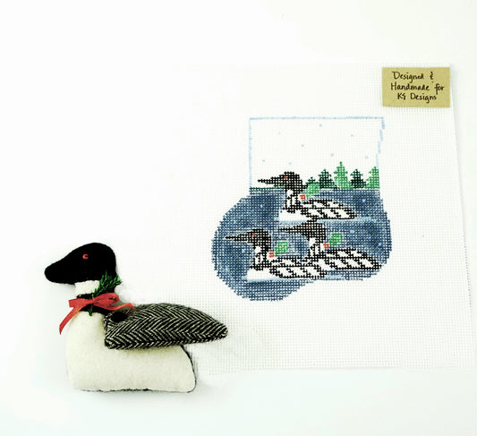 CANVAS SET ~ 3 LOONS on a LAKE CANVAS SET ~ 18 mesh HP Needlepoint Mini Stocking Ornament by Kathy Schenkel