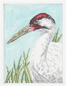 Bird Canvas ~ American WHOOPING CRANE Bird handpainted Needlepoint Canvas by Needle Crossings