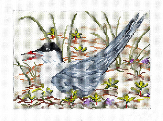 Bird Canvas ~ Common Tern Sitting on the Beach 18m handpainted Needlepoint Canvas by Needle Crossings