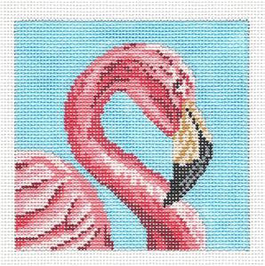Bird Canvas ~ Elegant Pink Flamingo 4" Sq. Coaster handpainted Needlepoint Canvas by Needle Crossings