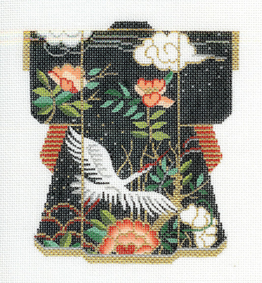 Kimono ~ Flying Crane & Flowers Oriental Medium Kimono handpainted 18 mesh Needlepoint Canvas by LEE