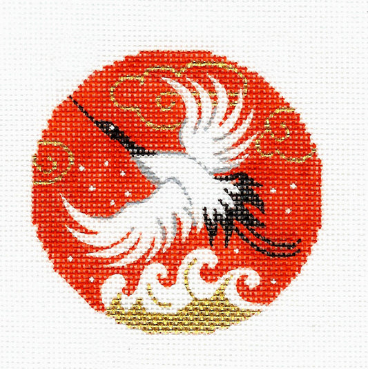 Round ~ Oriental Flying Crane Wedding 3" Rd. 18 mesh Handpainted Needlepoint Ornament Canvas by LEE