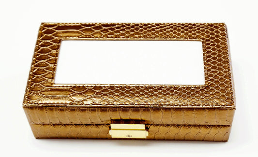 Leather Jewelry Box ~ Metallic Bronze Leather Jewelry Box with Interior Compartments for Needlepoint Canvas LEE