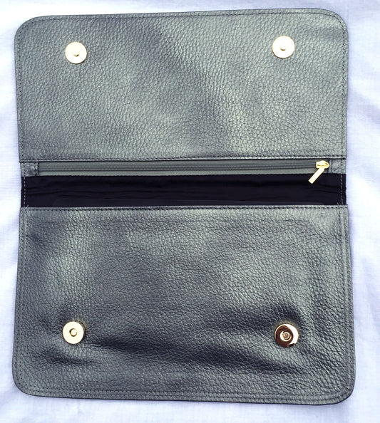 Accessory ~ Pewter Leather " Classic Clutch Bag " for a Hand Painted Needlepoint Canvas Insert by LEE