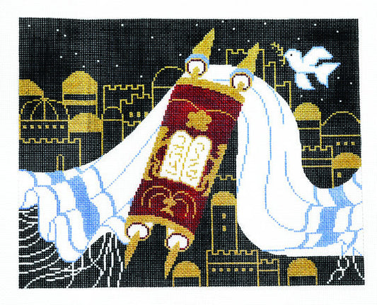 Canvas ~ Tallis Bag with Torah Candles and Tallit 13 Mesh handpainted Needlepoint Canvas from LEE