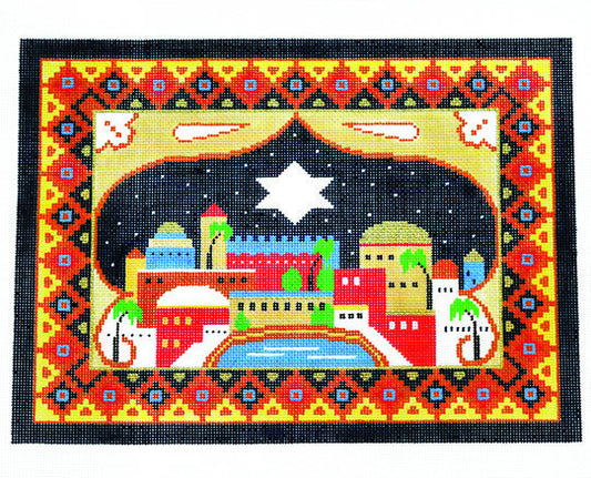 Canvas~Tallis Bag with Jerusalem on a Starry Night handpainted Needlepoint Canvas