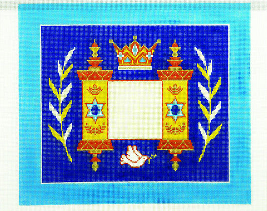 Canvas~Tallis Bag with Torah Crown and Dove on Blue handpainted Needlepoint Canvas