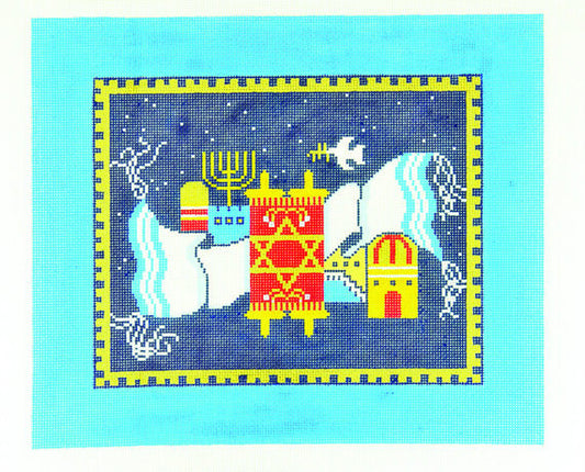 Canvas ~ Tefillin Bag with Torah Candles and Tallit handpainted Needlepoint Canvas from LEE