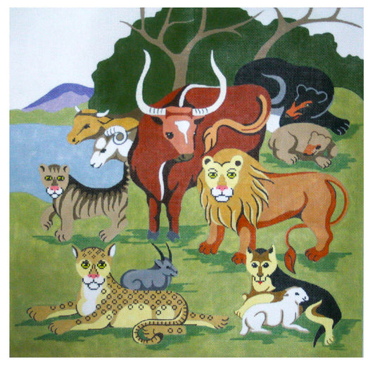 Canvas ~ PEACEABLE KINGDOM handpainted LG. Needlepoint Canvas by Silver Needle