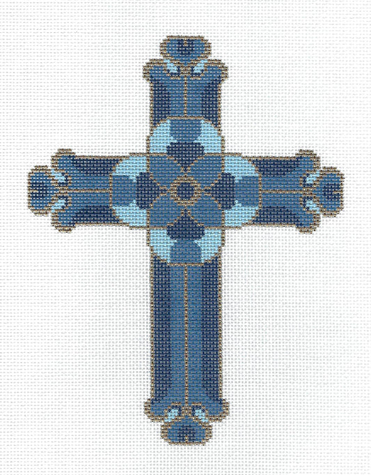 Cross ~ Elegant 7" tall Multi Shades of Blue CROSS 18 Mesh handpainted Needlepoint Canvas by LEE