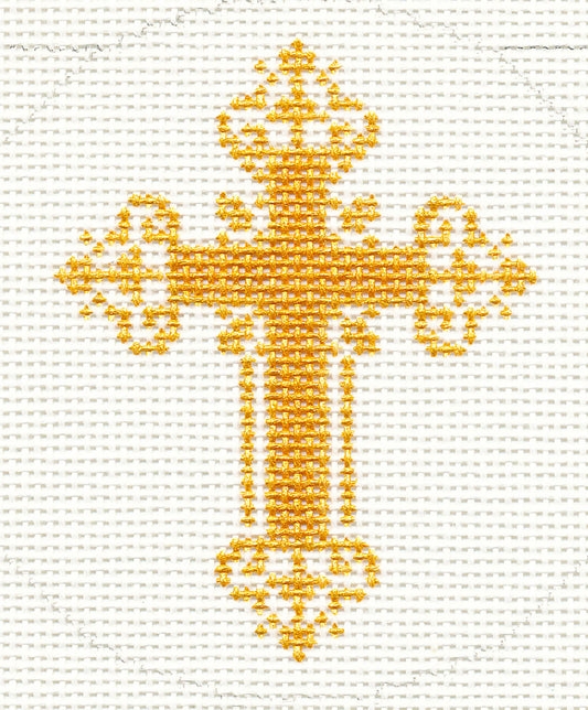 Cross ~ Elegant 7" tall Gold Filigree CROSS handpainted 18 Mesh Needlepoint Canvas by LEE