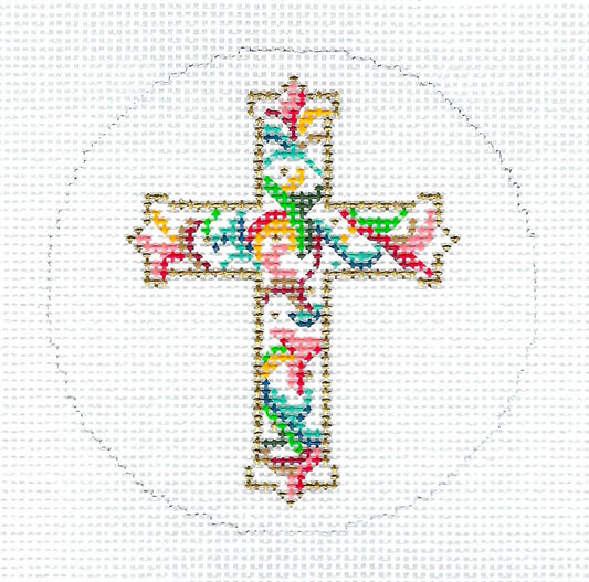 Cross ~ Elegant 7" tall Jeweled Multi-Colors CROSS handpainted Needlepoint Canvas by LEE