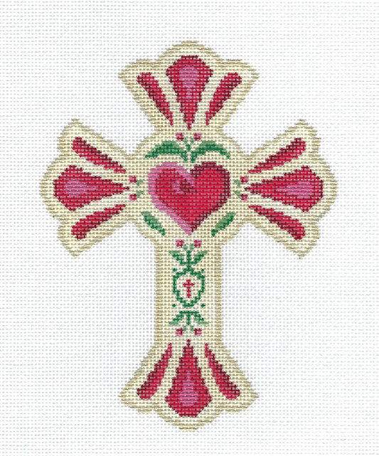 Cross ~ Elegant 7" Tall WEDDING or Anniversary CROSS handpainted 18 Mesh Needlepoint Canvas by LEE