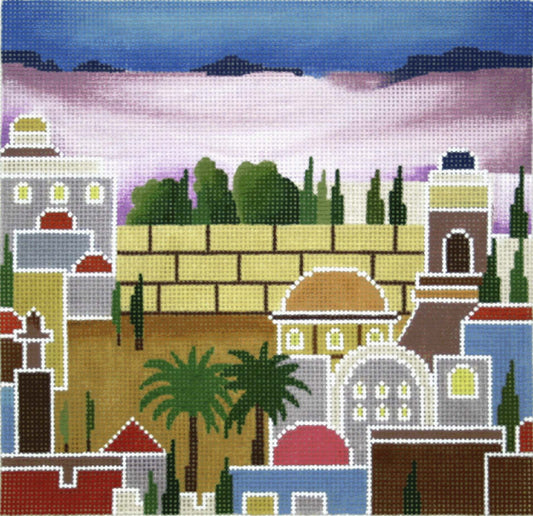 Travel Round ~ JERUSALEM Holy Land handpainted 4.25" Needlepoint Canvas by Silver Needle