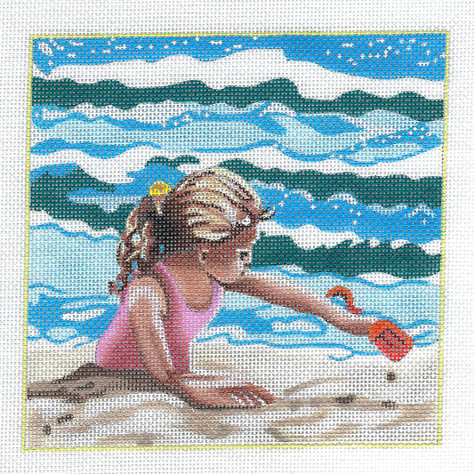 Seaside Summer ~ Little Girl Playing on the Beach handpainted Needlepoint Canvas by Kamala from Juliemar