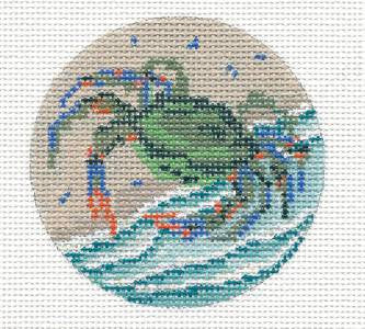 Round ~ Blue Crab on the Beach 3" Ornament 18 Mesh handpainted Needlepoint Canvas by Needle Crossings