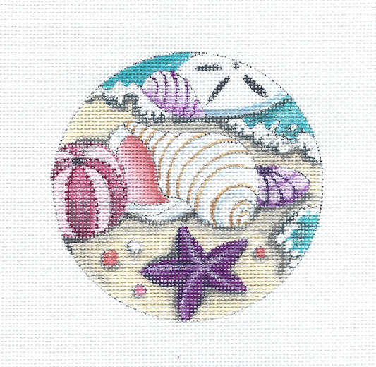 Seashells Canvas ~ Seashells & Starfish on the Beach handpainted 18 mesh Needlepoint Canvas by Alice Peterson