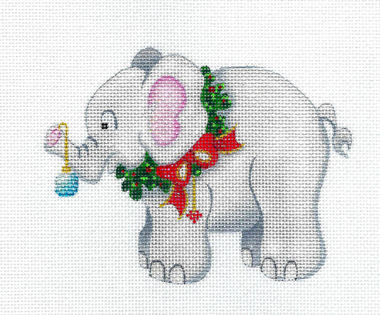 Christmas Elephant with Ornament and Holly Wreath handpainted Needlepoint Canvas by Strictly Christmas