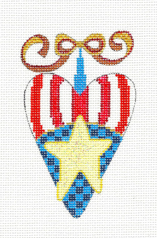 Patriotic ~ Heart with Golden Star handpainted Needlepoint Canvas by Strictly Christmas