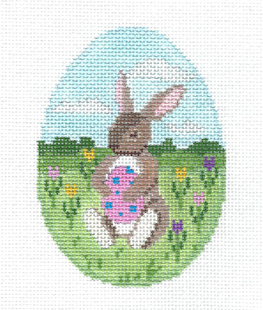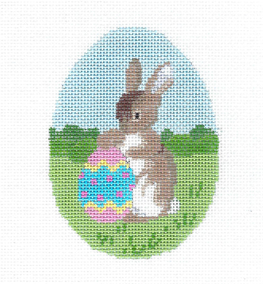 EGG ~ Easter Bunny with Colorful Egg handpainted Needlepoint Ornament by Susan Roberts
