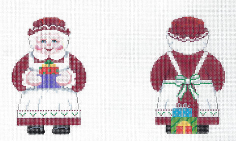 Christmas ~ Mrs. Claus with Gifts 2 Sided Ornament handpainted Needlepoint Canvas by Susan Roberts