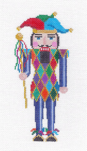 Christmas ~ Harlequin Nutcracker with Staff handpainted Needlepoint Ornament by Susan Roberts
