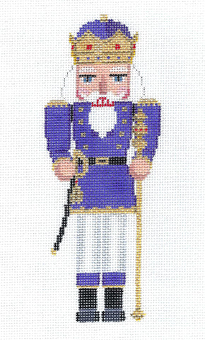 Nutcracker ~ Blue King Nutcracker with Gold Crown Ornament HP 18 Mesh Needlepoint Canvas by Susan Roberts