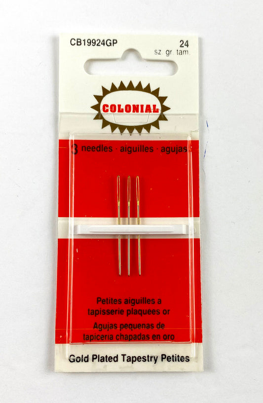 Colonial ~ English Size #24 Gold Plated "Petites" Tapestry Needle, Set of 3, for Needlepoint ~ Size 24