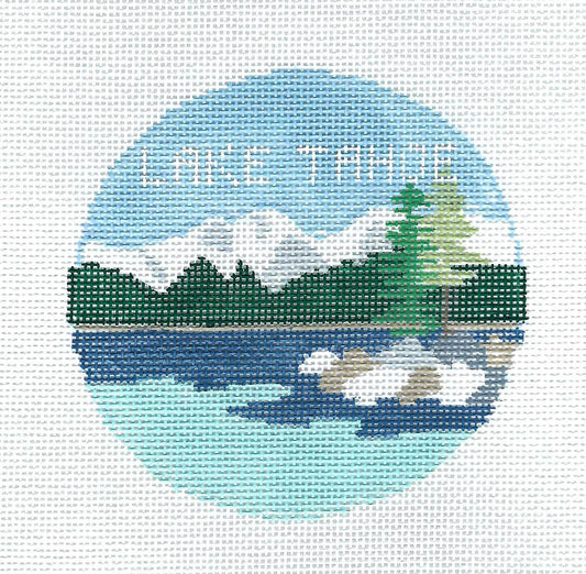 Travel Round ~ ALASKA Wildlife and Wilderness 18 Mesh handpainted 4"Rd. Needlepoint Canvas by Kathy Schenkel