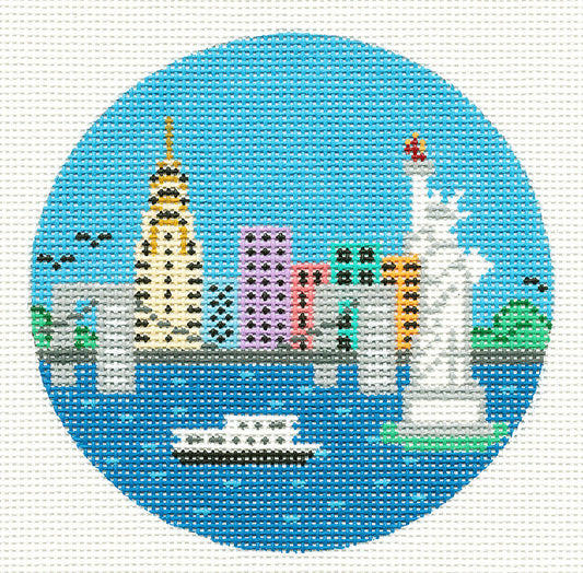 Travel Round ~ NEW YORK CITY, New York handpainted 4" 18 Mesh Needlepoint Ornament Canvas by Painted Pony