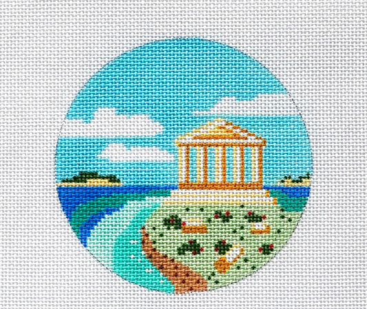 Travel Round ~ County of GREECE handpainted 4" 18 Mesh Needlepoint Ornament Canvas by Painted Pony