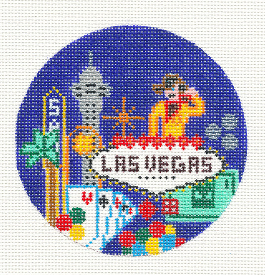 Travel ~ Las Vegas, Nevada Destination 4" Round handpainted 18 Mesh Needlepoint Canvas by Painted Pony