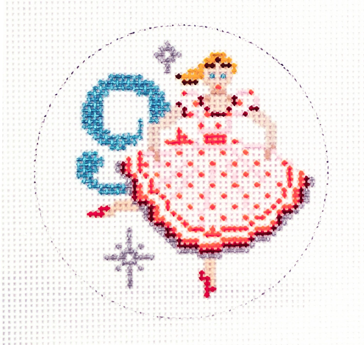12 Days of Christmas ~ 9 Ladies Dancing 13 Mesh handpainted 4" Round Needlepoint Canvas by Alice Peterson