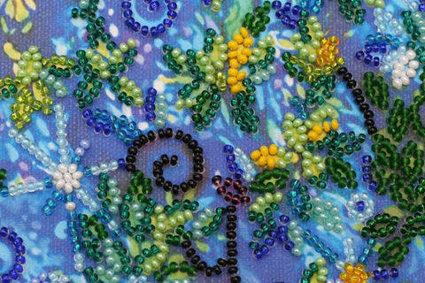 Each Abris kit comes with everything you will need to make your project; the pattern silk-screened on heavy canvas, all Czech glass seed beads, 3 beading needles, and instructions in Russian, Ukrainian and English.